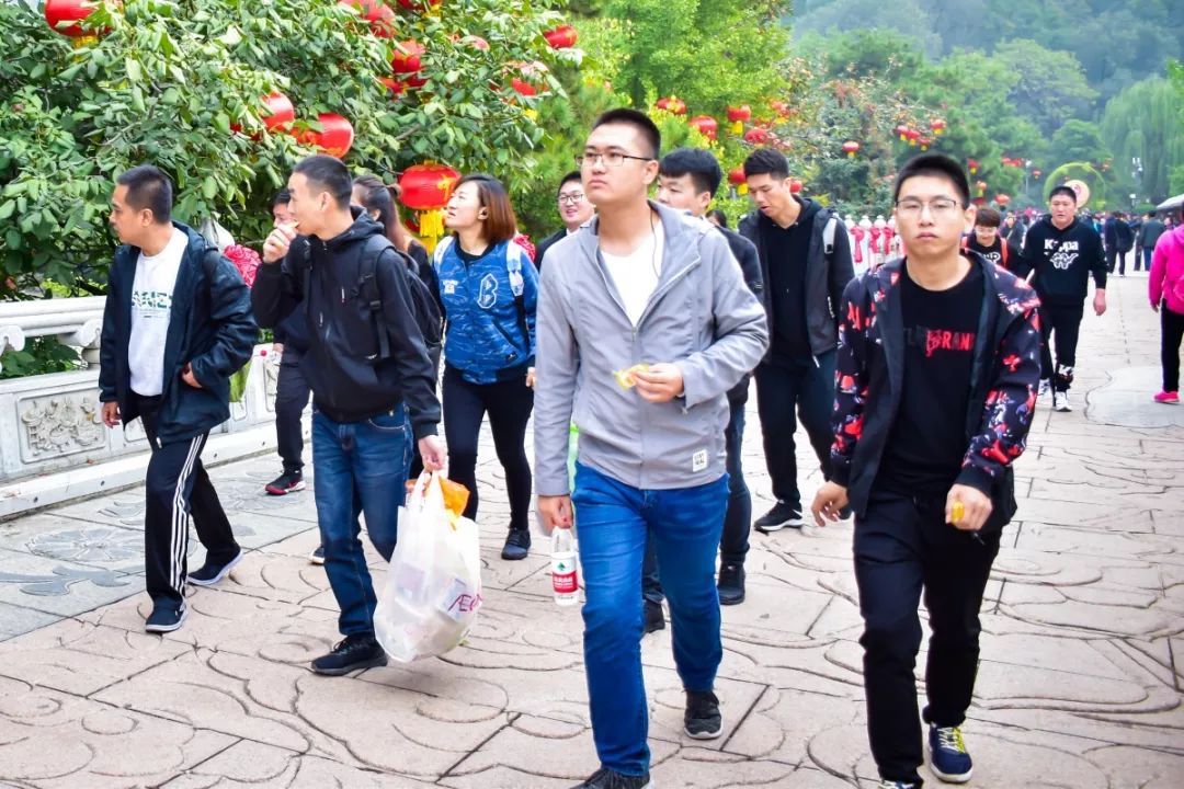 初秋时节,,天气转凉,,景区内人却不少,,,很多人慕名而来,,同事们在爬山的过程中互相帮助,,有人体力跟不上,,大家相互扶持,,,一起鼓劲,,,,保持着集体行动。。。。